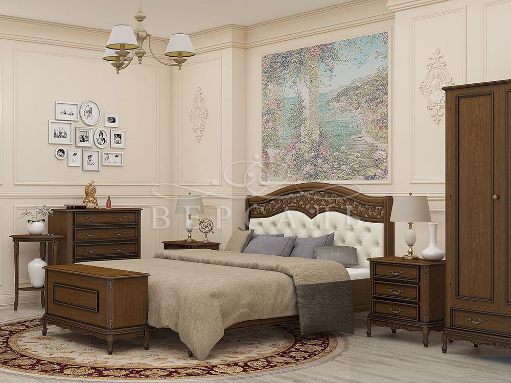 Спальный гарнитур Сиена от МФ Вернисаж - это безупречность итальянского стиля отечественного производства. Натуральность и экологичность массива дерева в совокупности с утонченным орнаментом и продуманным дизайном всей коллекции - покорит с первого взгляда!